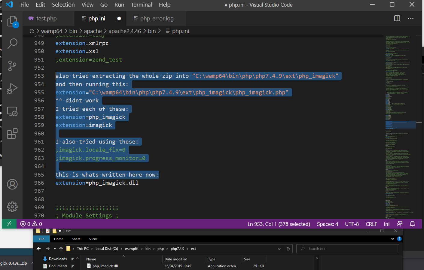 C:\wamp64\bin\php\php7.4.9\ext它与我目前使用的PHP版本相匹配(更多的informationphp.ini请参阅稍后的图片)。