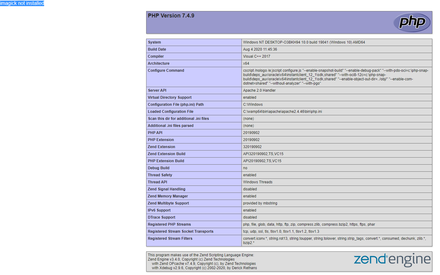 [25-Sep-2020 08:58:50 UTC] PHP Warning: PHP Startup: Unable to load dynamic library 'php_imagick.dll' (tried: c:/wamp64/bin/php/php7.4.9/ext/php_imagick.dll (The specified module could not be found.), c:/wamp64/bin/php/php7.4.9/ext/php_php_imagick.dll.dll (The specified module could not be found.)) in Unknown on line 0当我使用EXE安装Magick时,我确保检查install to the path,将文件夹更改为C:\ImageMagick,并在可能的情况下按照Stack OverFlow上的建议安装legacy drivers。(我还确保卸载我每次尝试的最后一个版本)