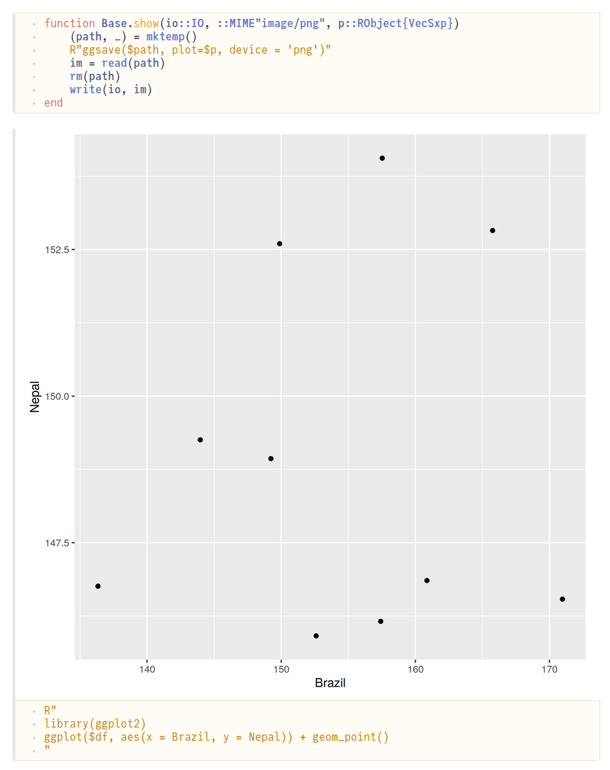 我正在使用一个Pluto.jl笔记本电脑。我想使用ggplot2 R库来制作一些情节。