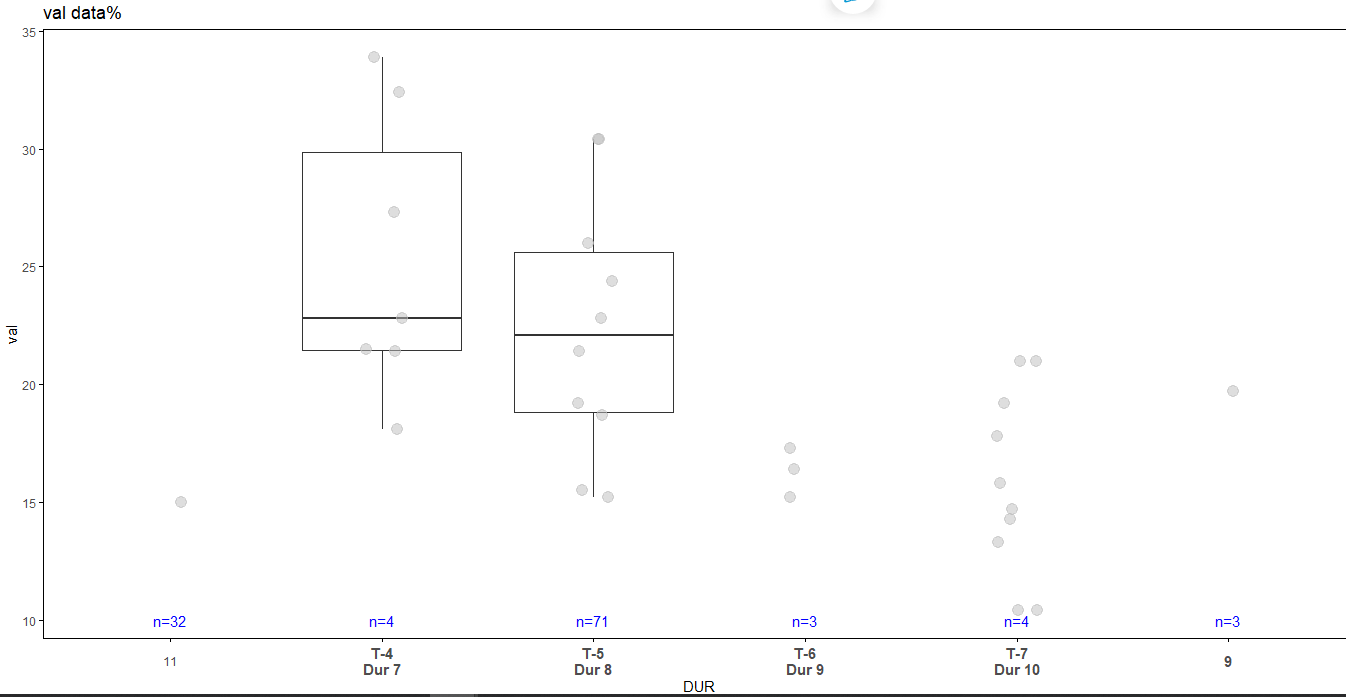 geom_boxplot(data=subset(data_1[,c("val","ID","DUR")],data_1$DUR %in% c(4,5)), aes(DUR,val))+