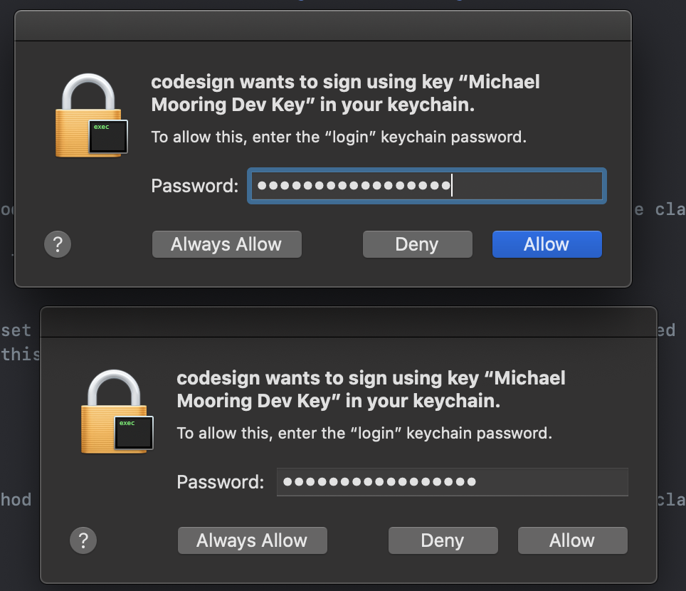 当我单击单独运行一个UI测试时,大约有20个代码符号对话框显示: