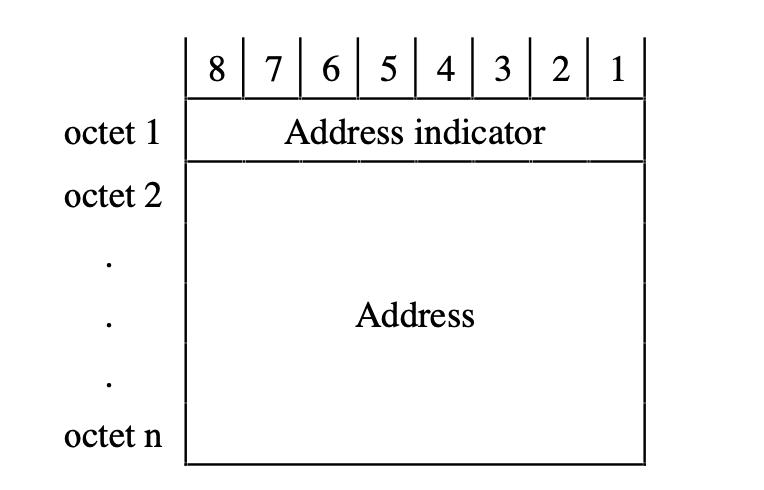 “地址指示符”表示地址字段中包含的地址信息的类型(参见图4)。该地址由下列元素的一个或任意组合组成: