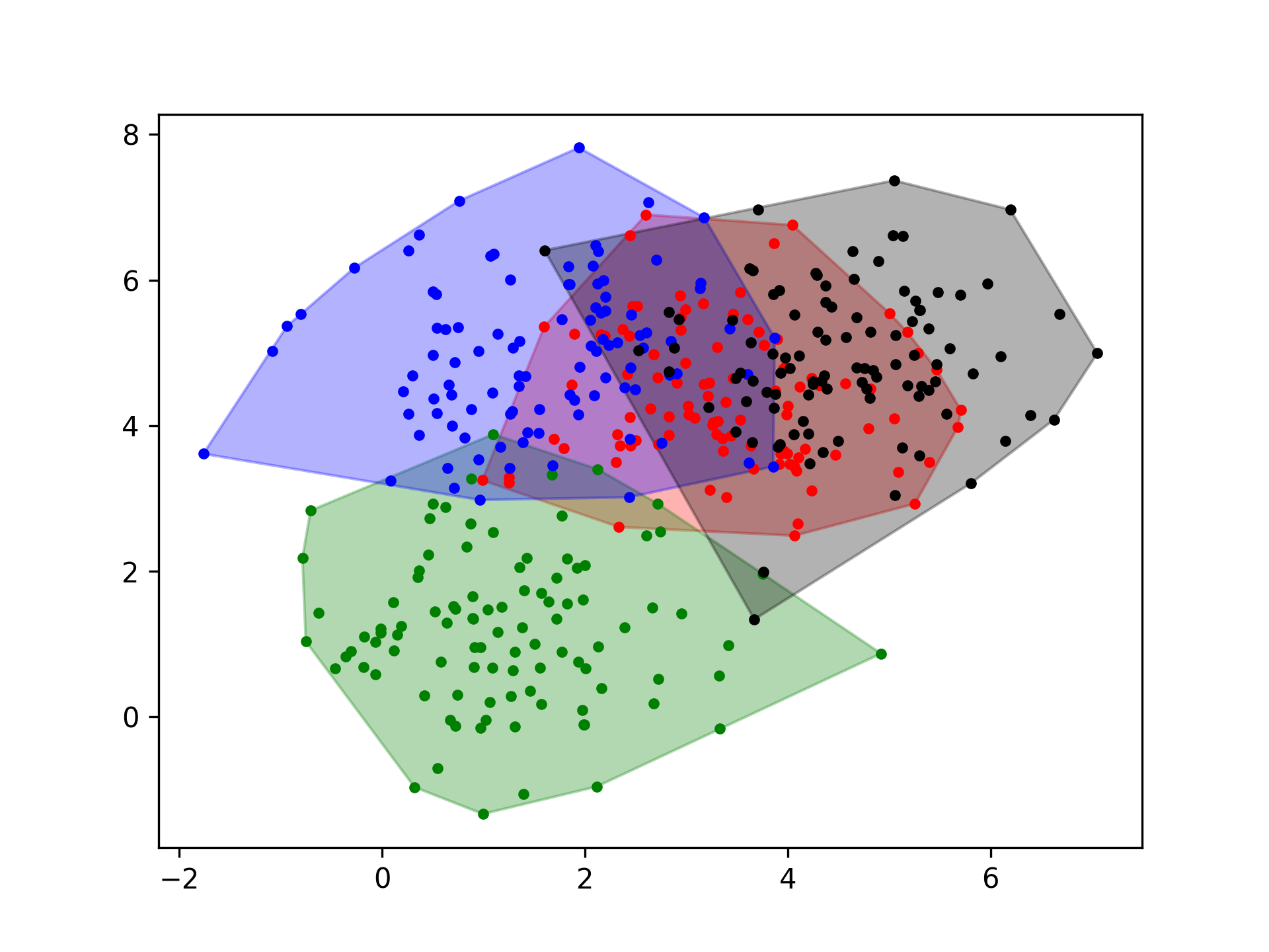 plt.fill(points[k][hull.vertices,0], points[k][hull.vertices,1], color = colors[k], alpha=0.3)