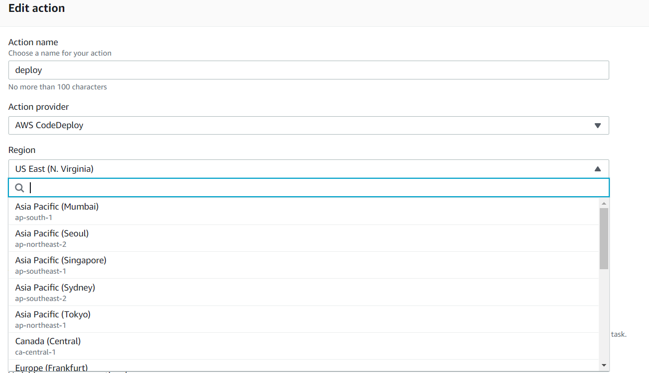因此,我尝试并在巴林地区创建了一个代码部署应用程序,并将我的代码管道放在了美国东部-1。