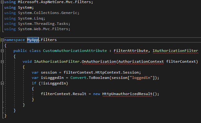 public class CustomAuthorizationAttribute : FilterAttribute, IAuthorizationFilter