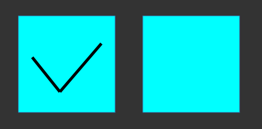 但我想要所有的背景与颜色青色。我已经检查了关于StyleSheet的Qt文档,也检查了一些老问题,但是没有一个问题对我有帮助。当我添加QCheckBox::indicator{ background-color : cyan; }时,按钮变成了所有的青色(就像在状态未选中的第一个图像上),处于选中状态和未选中状态。再加上像border这样的礼仪对我也没有帮助。