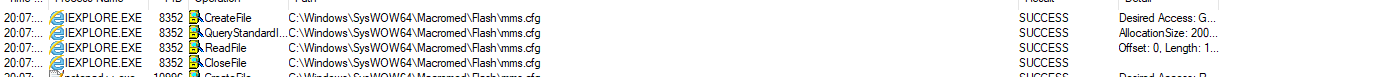 为了100%确定IE使用配置文件,我运行了ProcMon,看起来IE实际上正在打开文件,就像您在图片中看到的那样。