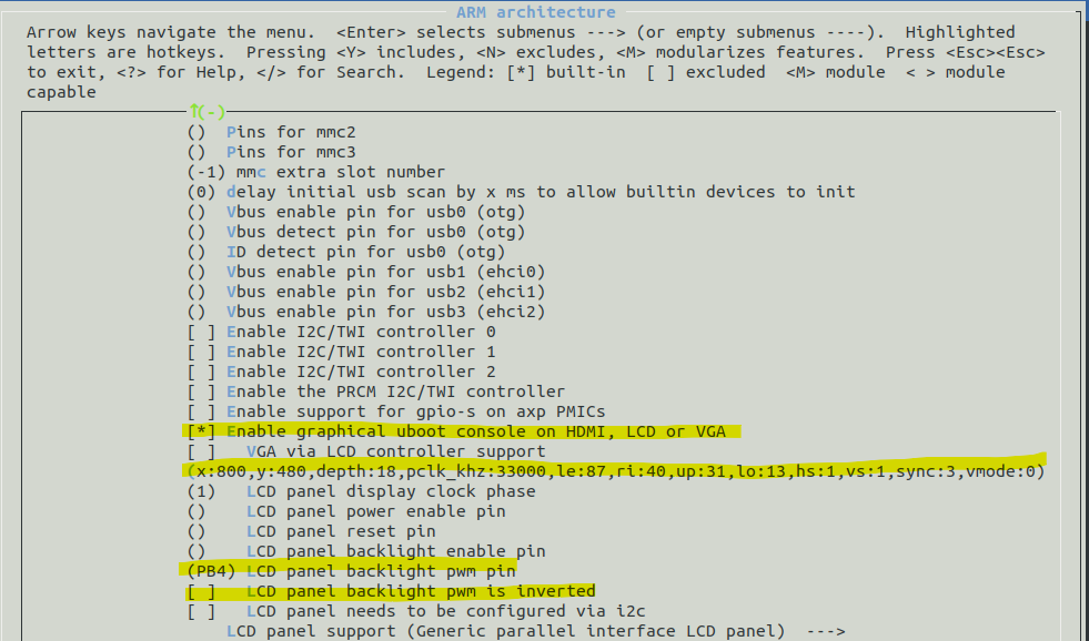 make经过几个小时的周游,我得到了sdcard.img。它包括所有必要的文件(zImage、RootFS、u-boot.bin等),可以使用linux dd或蚀刻机将其放置到SD。Linux引导成功,但您只能通过UART使用终端,因为没有LCD输出。你可以让液晶显示器自己工作: