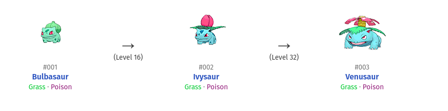 7 Venusaur Ivysaur Anything 但是,最棒的是,您可以使用递归的origin值来定义所有的pokemons的最顶层父级: