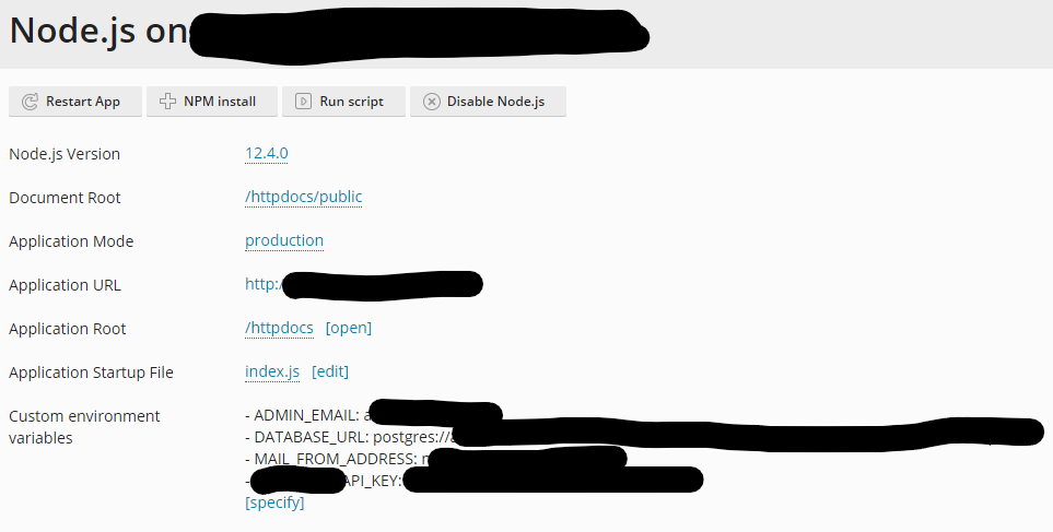 此外,“应用程序模式”在理论上应该充当流程的NODE_ENV,并且似乎是这样做的。我也尝试将它添加到“自定义环境变量”中,但这并不能解决我的问题。