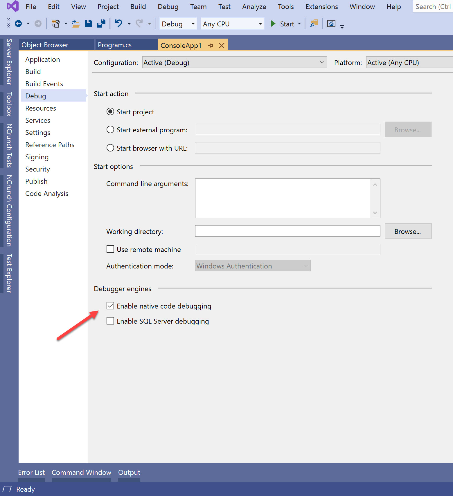 以下是调试部分中提到的控制台应用程序的项目属性: