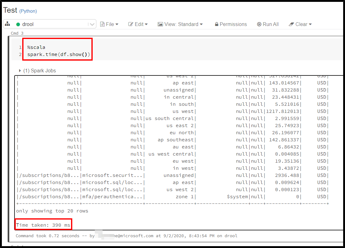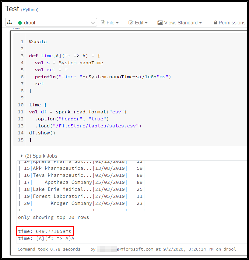 您可以通过调用System.nanoTime (Scala)来做到这一点。当使用spark.time时,执行代码和测量其运行时间的一种方法是使用: spark.time(
