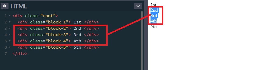 是否可以在突出显示的元素上添加类?例如:如果我选择.block-2, .block-3, .block-4并按下Enter键,那么所有这些块都应该添加一个新的类。我的意思是,当按下Enter键时,我需要在高亮选择中获得所有这些元素。