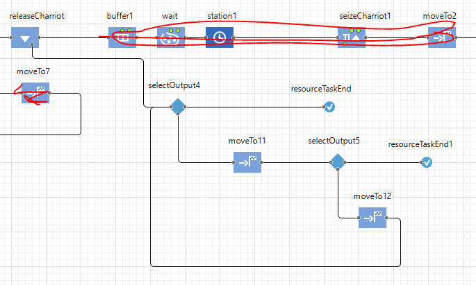 我要做的是首先在资源中有一个状态图来控制资源从一个地方移动到另一个地方,这样你就可以对它有更多的控制。状态图只有在资源未被没收时才会被用于移动资源。这将允许您的资源从站1移动到站2,但是在站1队列中出现了一些东西,并且资源可以在到达站2之前立即作出反应并返回到站1(如果您认为这样做是个好主意)。