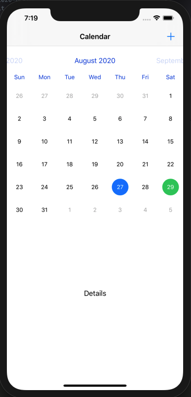 我目前正在尝试在我的应用程序中添加一个日历界面,当您单击底部的某一天时,它将显示当天事件的详细信息。目前,我使用FSCalendar作为我的日历。