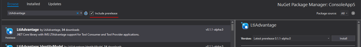 实际上是,这是唯一一个具有LTI 1.3特性的。但是,它只适用于网络核心项目和VS2017+,并且可能无法很好地与VS2015一起工作。目前,该团队正在努力为LTI 1.3开发nuget软件包,这并不是非常完整。它可能并不适用于所有项目类型,包括Net Framework。如果您仍然希望在Net Framework项目下使用VS2015中的这个包,您应该需要contact the author来反馈您的请求。