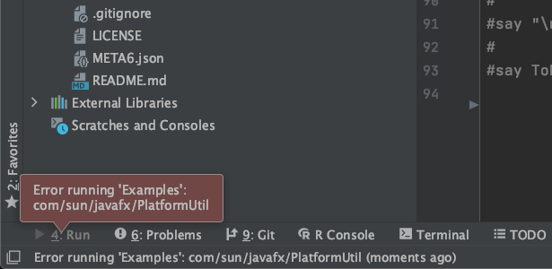 当我试图运行一个配置好的脚本时,我得到了“运行‘示例’的错误: com/sun/javafx/PlatformUtil”:
