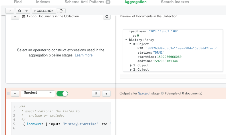 ])您需要在$project之后将它作为unwinding的一部分,因为它是一个数组。