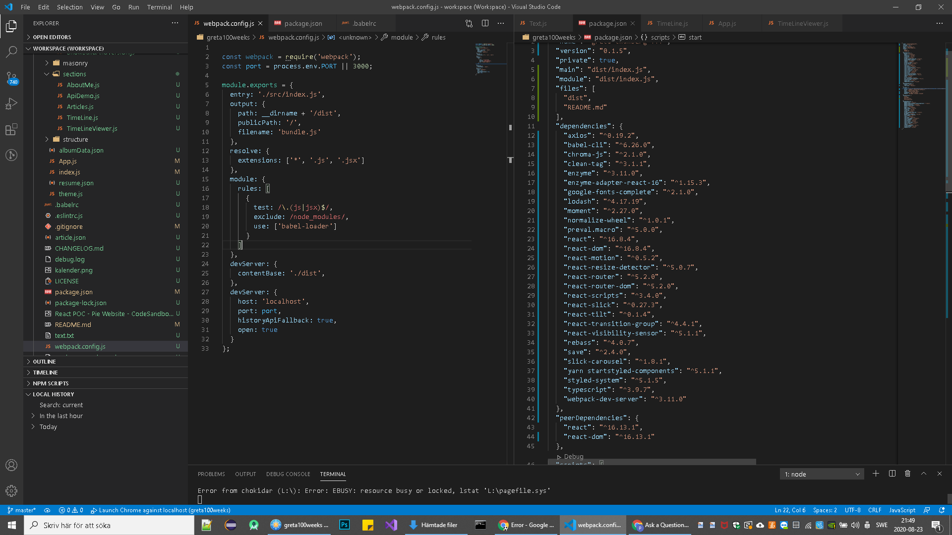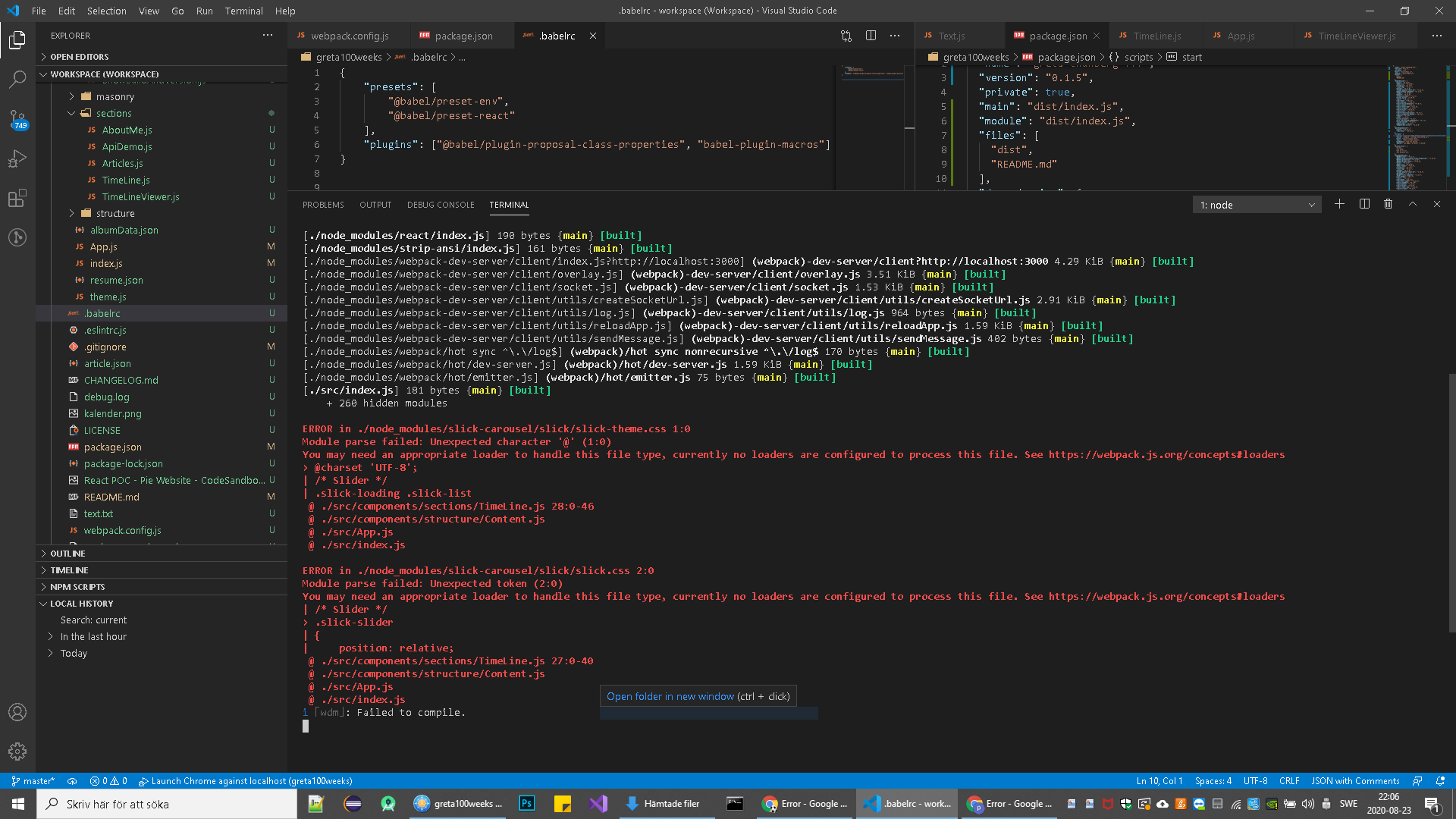 PS L:\react\Greta100Weeks\greta100weeks> yarn start