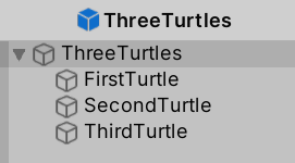 我有一个Controller类,它有一个GameObjects列表,它确实是预制的(在我的代码中称为turtlesTypePrefab)。正如您在这里看到的,我使用的预制板里面有带有动画的精灵(我的意思是FirstTurtle有一个动画师,SecondTurtle等等,它们都是我的预制片ThreeTurtles的一部分)。