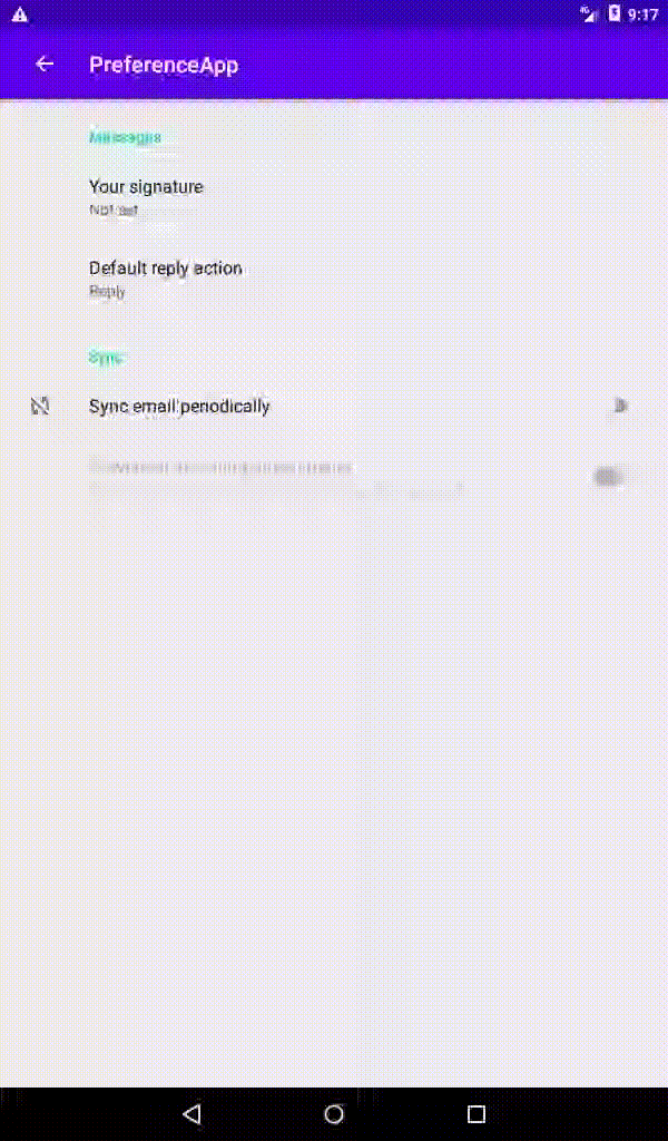 这就是我的PreferenceScreen xml文件中的内容: