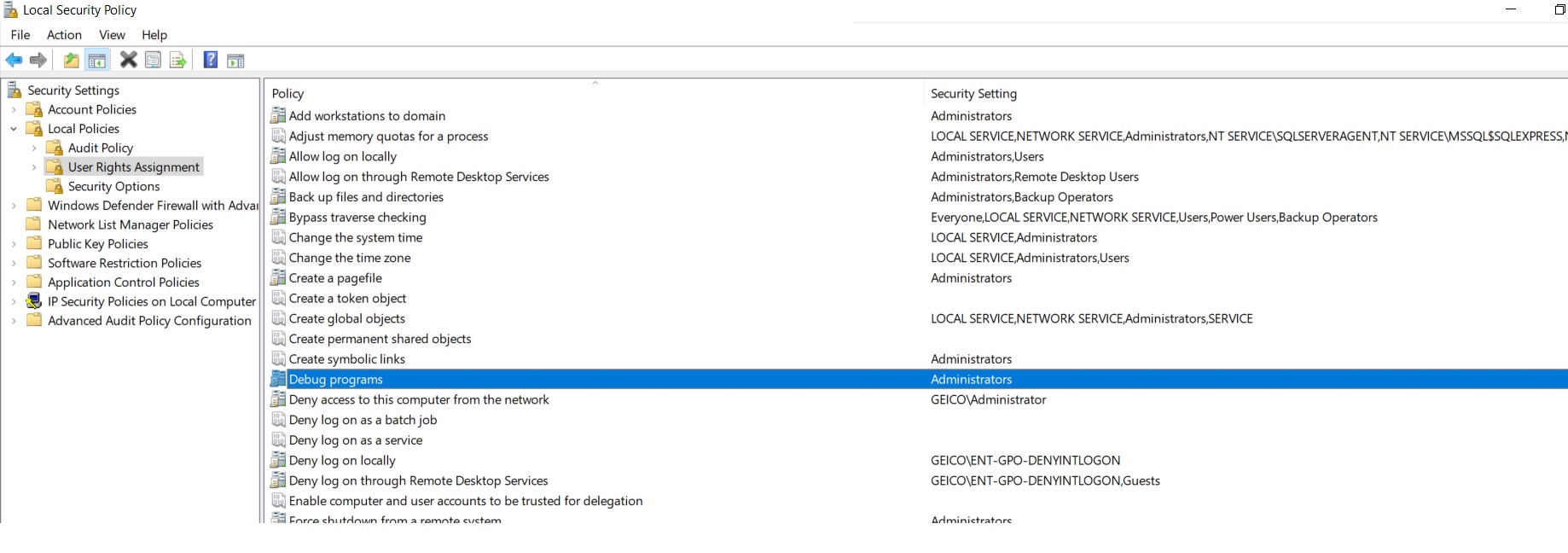 In the Local Security Policy window, select Local Policies.
