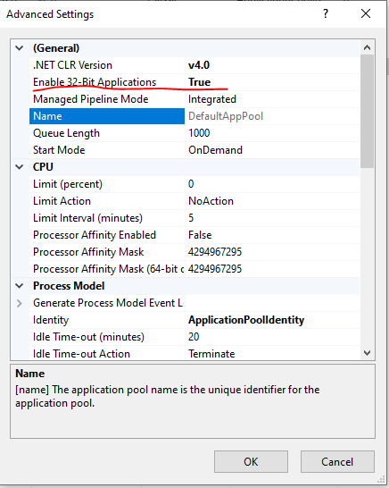 更具体地说,将“启用32位应用程序”设置为“False”会导致问题。在将此选项更改为“True”后,我成功地附加了“w3wp”。