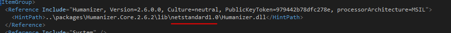 作为您的描述,Humanizer.Core具有像net standard 1.0和netstandard 2.0这样的依赖关系,