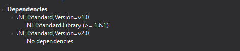 如果您的项目目标是>=net framework 4.6.1,它将安装net standard 2.0依赖项。