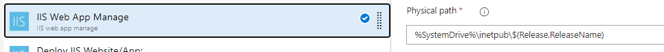 /release-n <-- IIS virtual application physical path is pointed to here因此,在ADO发布版IIS任务中,如何将物理路径指定为带有像release-n这样的变量的表达式