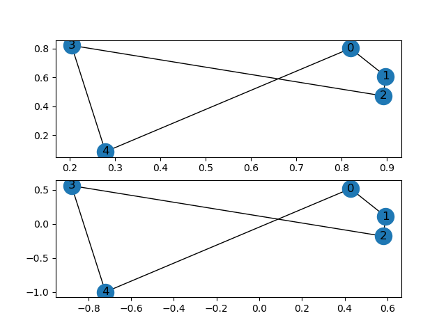 文档中写着:pos (numpy array) – positions to be scaled. Each row is a position,这不是NetworkX的其他绘图用的标准“位置字典”。我曾试图在"pos“上使用NetworkX的to_numpy_array,但没有成功,to_numpy_array的输出是一个与rescale_layout的Each position is one row of the array要求不相匹配的Graph adjacency matrix。