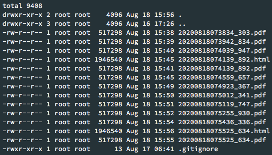 OUTPUT=`docker run -ti --rm -v /server-path:/pdf bwits/pdf2htmlex pdf2htmlEX --zoom 1.3 20200818075525_634.pdf`;echo $OUTPUT;命令被执行,我可以看到pdf文件已经成功地转换成HTML。