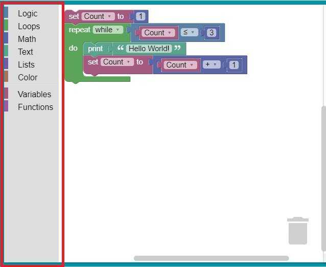 我正在制作一个基于网络的编码游戏,所以我使用了块,以便孩子们可以拖放来编程他们的游戏。我能够使用我自己的JavaScript和CSS在编辑器上定制一些东西。但是我希望这个特性能够切换工具箱,这样就会有更多的空间来查看这些块。