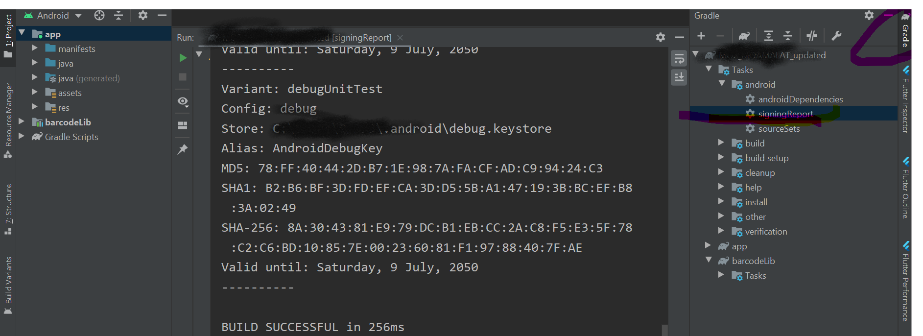 H212/code>单击signingReport上的signingReport上的SHA1和MD5 (有时在Gradle控制台中))示例