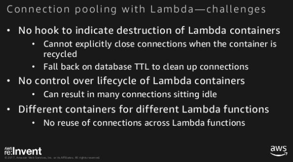 因此,连接池对Lambda没有好处,您可以做的是重用连接。