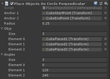 对于那些感兴趣的人,这是我对@Ruzihm的解决方案的组件改编。PlaceObjectsOnCirclePerpendicularToVectorLine组件放置在一个空的游戏对象上。
