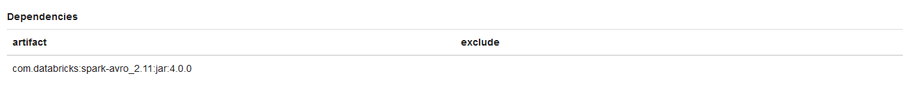 ERROR [2020-08-07 05:50:02,768] ({Thread-853} InterpreterSettingManager.java[run]:573) - Error while downloading repos for interpreter group : spark, go to interpreter setting page click on edit and save it again to make this interpreter work properly. : Cannot fetch dependencies for com.databricks:spark-avro_2.11:jar:4.0.0