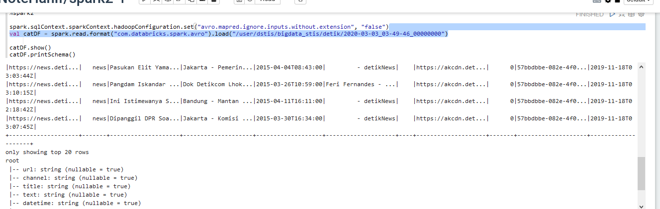 val catDF = spark.read.format("avro").load("/user/dstis/shopee_category_14112019")