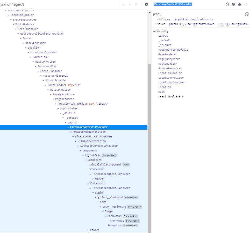 </FirebaseContext.Provider>AppWithAuthentication本身使用withFirebase HOC,因为它需要Firebase来获取AuthUser (然后将其存储在上下文中并通过提供程序传递),而且它能够很好地做到这一点。