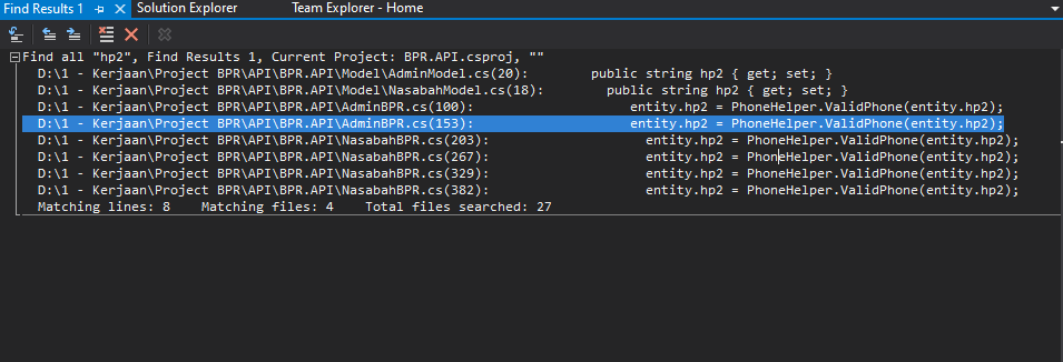 第二个捕获表示查找引用在代码中的用法,它提供了一种方法来查找在代码库中引用特定代码元素的位置。您可以在Microsoft documentacion查找参考资料中找到更多信息。