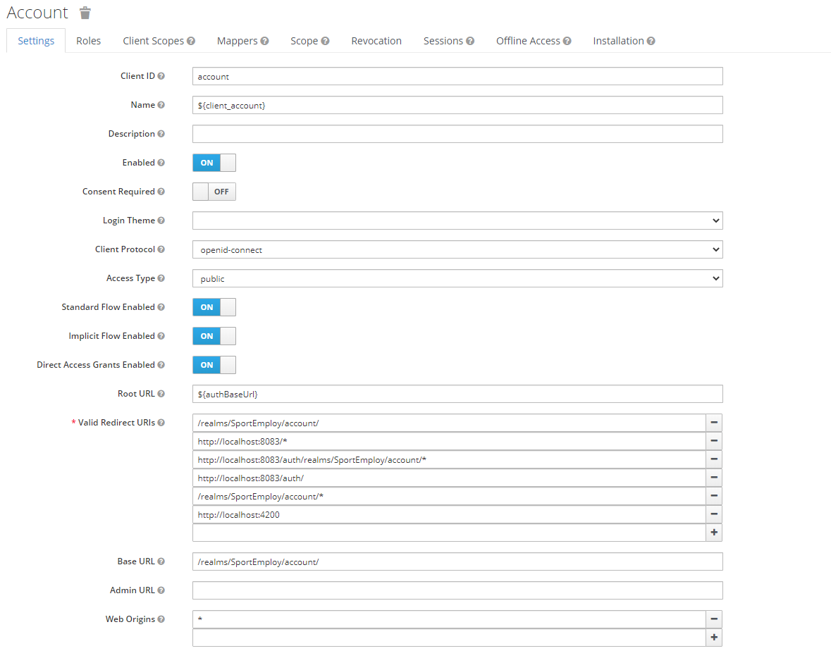 我尝试将两个客户端的WebOrigins ( http://localhost:4200/ http://localhost:4200 * +和*)的变体放入其中,这一切都不起作用。