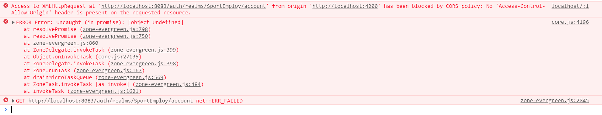 我尝试添加localhost:4200作为所使用的客户端的Web,在角部分上配置为我的客户端的客户机是newClient,但是上面的请求是针对帐户客户端的。