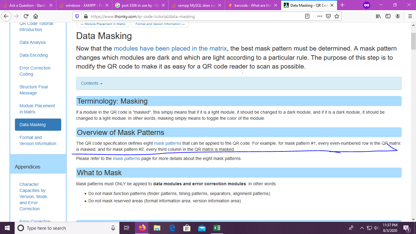 我手工制作了一些QR代码,我被困在了制作QR代码的数据掩蔽部分。