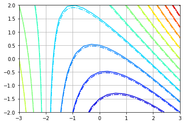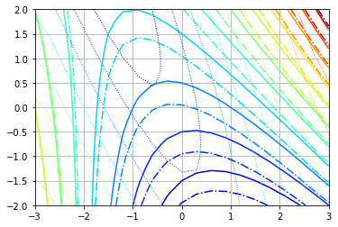 axe.axes.contour(Xi, Yi, np.hypot(dZdxi, dZdyi), Vl, cmap='jet', linestyles='-.')