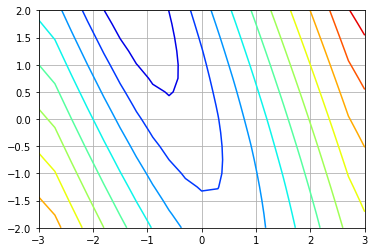 axe = plt.contour(X, Y, Z, lz, cmap='jet')