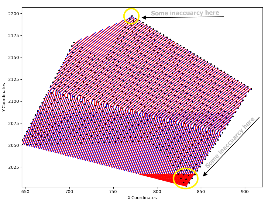 感谢@一个与这段代码相连的人。我试着用间距为0.5x0.5m的网格来得到一个更精确的表示,并在每个网格点上计算梯度,但是我无法正确地集成它。我也有一些边缘影响,影响的结果,我不知道如何纠正。