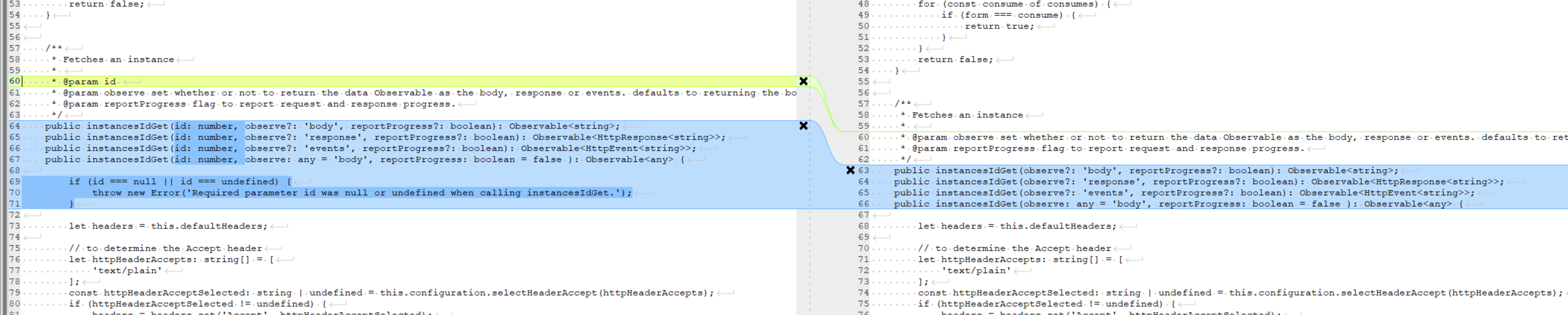 左边是在editor.swagger.io中生成的代码,右边是我通过在本地运行codegen生成的代码。