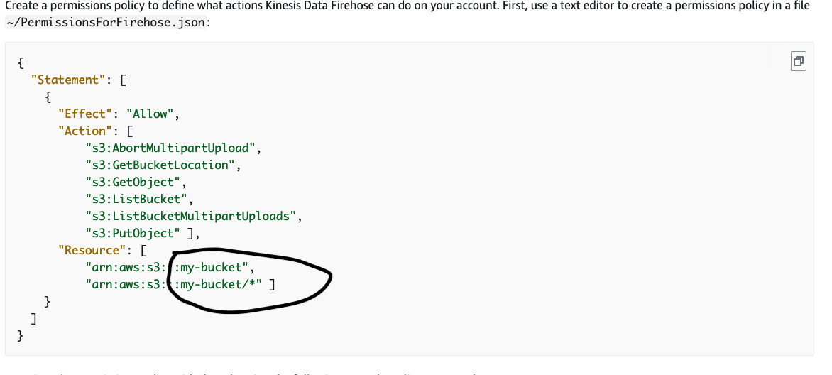 我遵循了指南,当我创建订阅筛选器(步骤12)时,当我试图发送到S3时会遇到这个错误:
