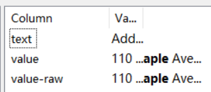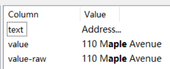 在下面的系列中,Address 1是一个完整的字符串。另外两个项目的字符串为110 M、aple和Avenue。