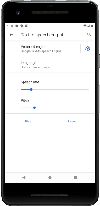 我使用的是Android,我的虚拟设备是Pixel2API 30。所以Google文本到语音引擎似乎是安装在上面的:
